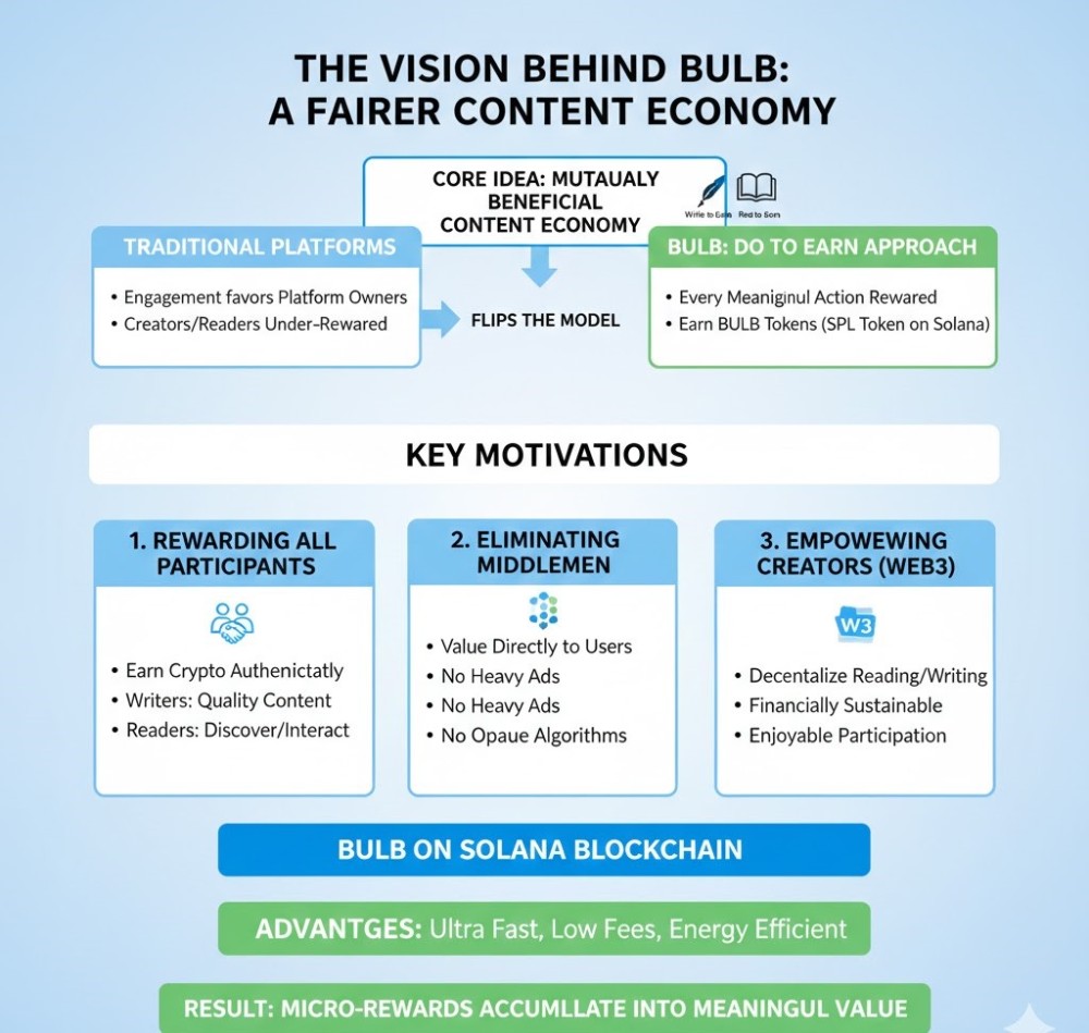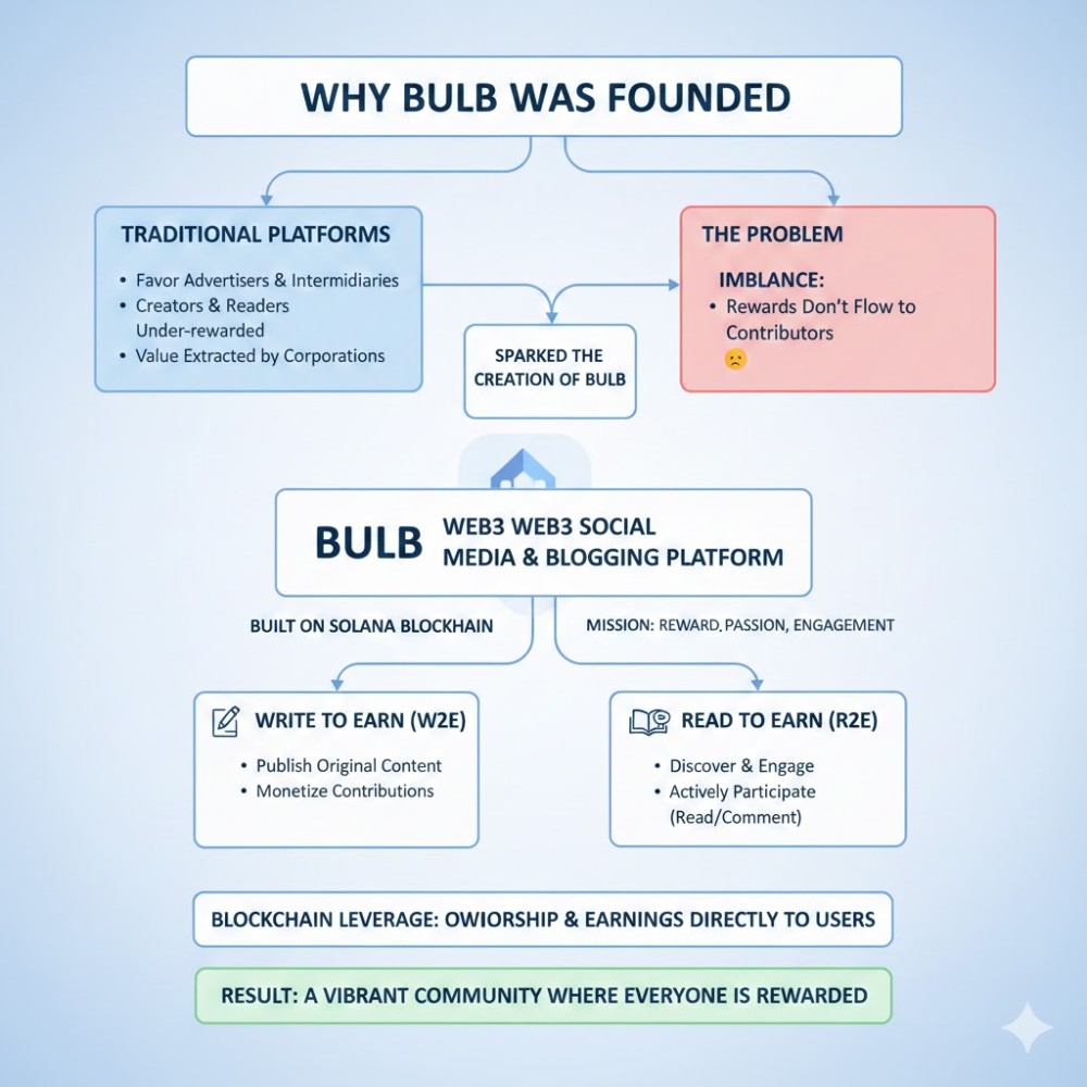 The core idea behind BULB emerged from a simple belief: content creation and consumption should be mutually beneficial. On traditional blogging and social media platforms, engagement often benefits platform owners far more than the participants themselves.
