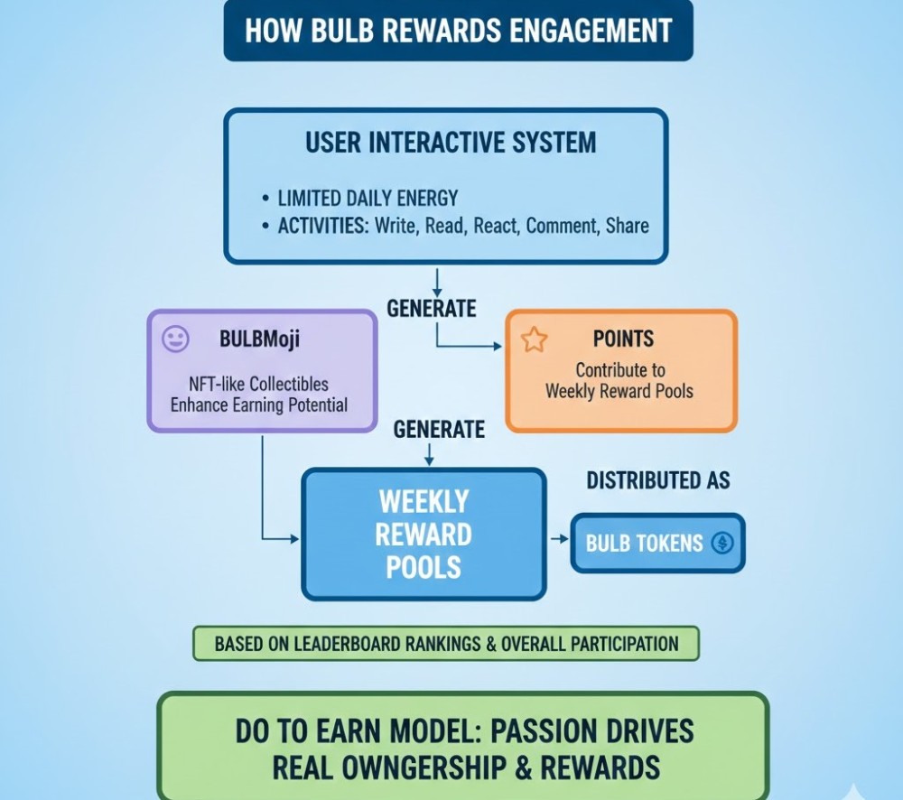 - These actions generate BULBmojis (NFT like collectibles that enhance earning potential) and points.