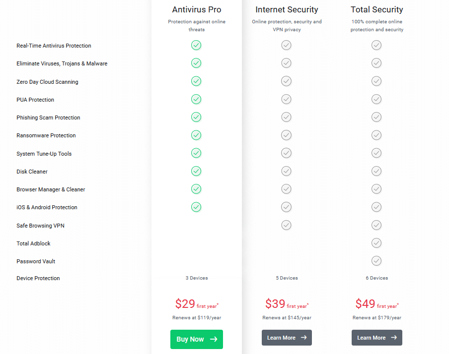 Cheapest PlanBest FeaturesNumber of DevicesAutomatic UpdatesCompatibilityMoney-Back Guarantee$34.68/year1. Advanced Firewall