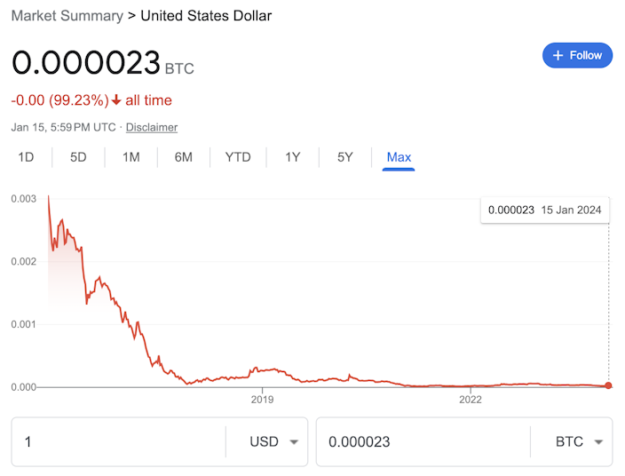USD vs BTC Purchasing Power