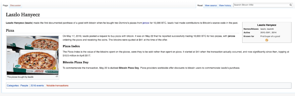 May 2010, when 10,000 bitcoins were exchanged for two pizzas