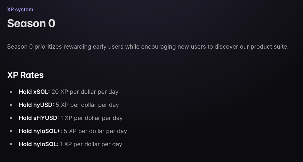 Season 0 has closed, but Season 1 remains open and you can still earn points and climb the ladder. Stake xSOL, hold HyloSOL or hyUSD to build your stack.