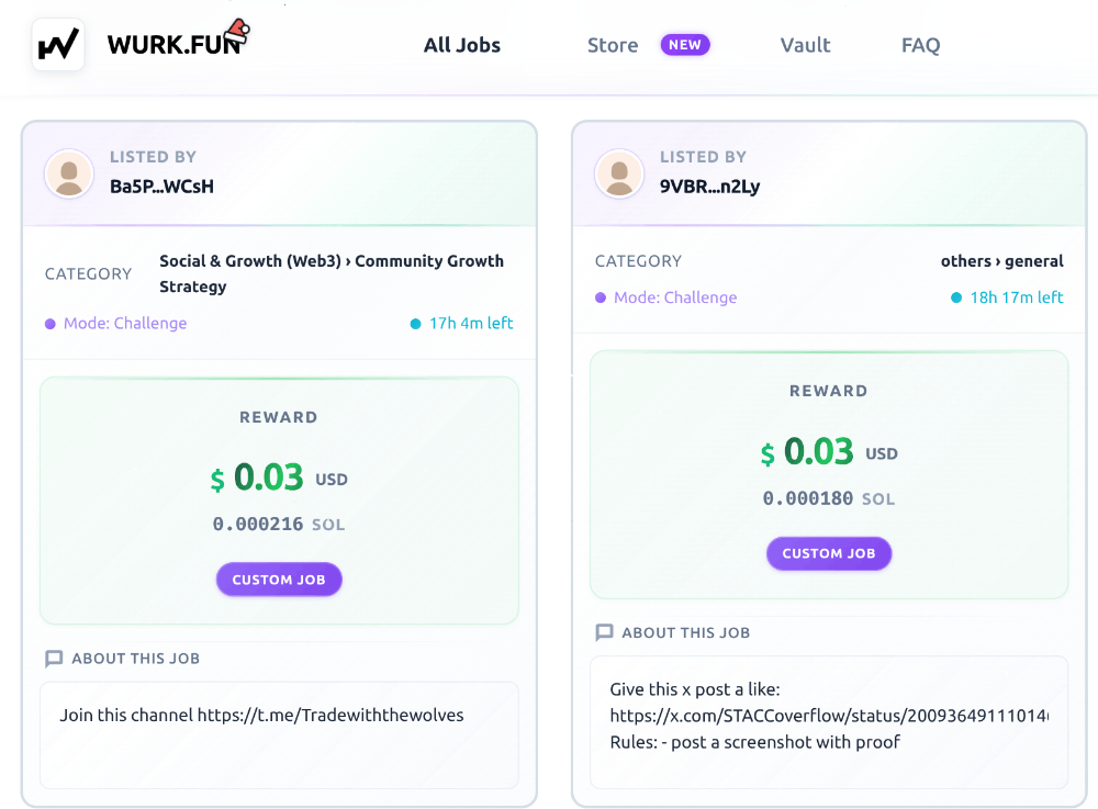 wurk.fun takes a different approach, offering a microtask model on Solana where users earn crypto for completing simple online actions.