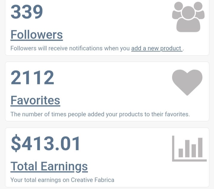 So far, I’ve made $413.01 selling on Creative Fabrica.