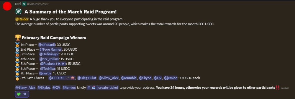 First of all, thanks to everyone who took the time to support the tweets. On average there were about 20 participants, which honestly isn't bad. As such, a total of 200 USDC rewards have been given in the month of March. Slow growth is a good sign.