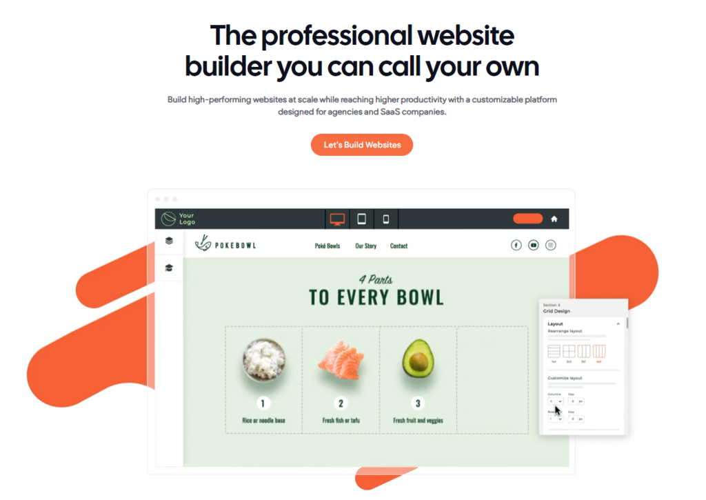 - 550 customizable pre-designed blocks. Create a professional website with no web design skills by using the pre-made header, button, column, and footer.