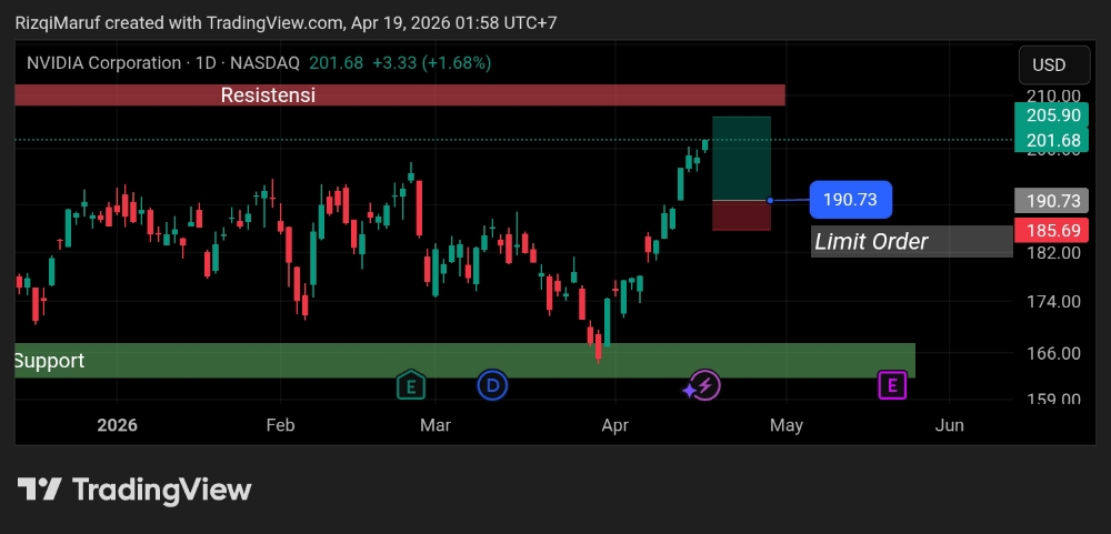 Looking at the 1-hour chart, NVIDIA (NVDA) is showing some serious strength. After a solid bounce from the $166 support level, we are currently sitting around $201.