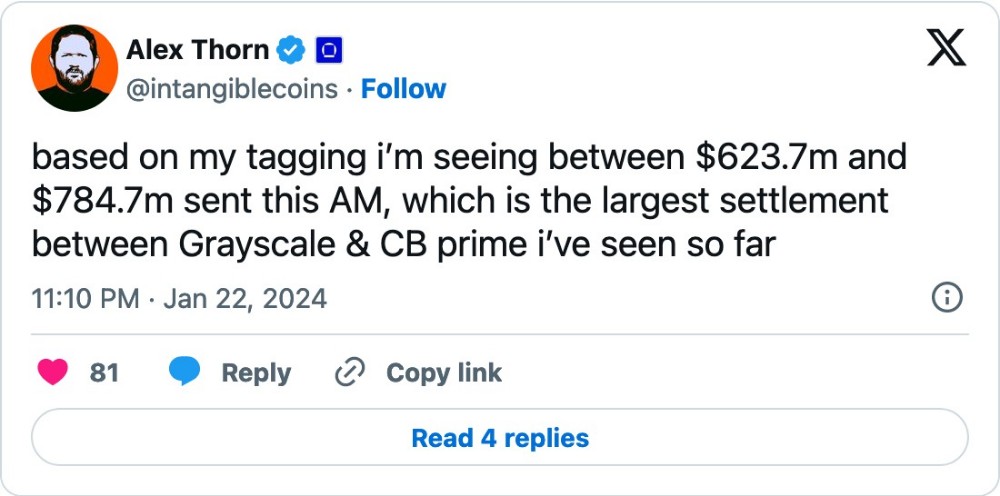 Bitcoin, the most well-known cryptocurrency , is facing significant selling pressure. This selling was triggered by the Grayscale Bitcoin Trust ( GBTC ), which reduced its assets dramatically. On January 22, GBTC recorded a withdrawal of 19,250 BTC, worth approximately $785 million.