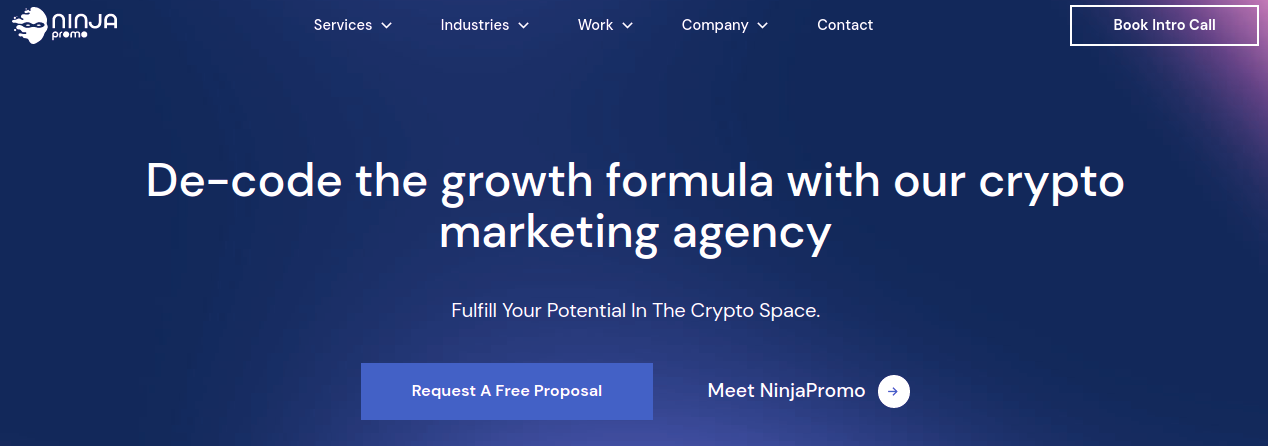 Ninja Promo, a crypto marketing agency, focuses on offering result-driven marketing strategies for crypto projects. Their team of marketers aims to devise the marketing strategy for a project based on its meticulous data, industry insights, and enterprising creativity. Their well-versed marketing strategies help the crypto project reach new audiences, build trust, and establish credibility. Some of their top business projects include Intellectsoft, eBay, Iqoniq, Paypolitan, Tripment, Xentrics Gaming, etc.