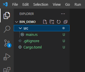 Yukarıdaki komut ile örnek bir Rust projesi oluşturulacaktır. Bu komut sonucu aşağıdaki yapıya benzer bir file structure oluşacaktır.