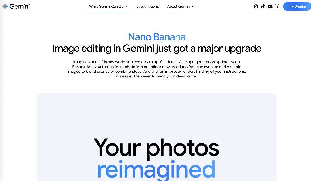 Nano Banana - Image editing in Gemini just got a major upgrade.