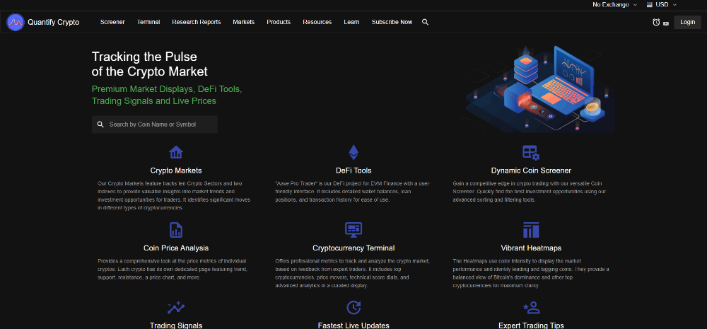 With a variety of tools and features such as a dynamic coin screener, price analysis, a cryptocurrency terminal, vibrant heatmaps, and trading signals, Quantify Crypto equips traders and investors with everything they need to navigate the crypto landscape.