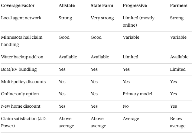 What this means practically: not all carriers price Minnesota risk the same way, not all settle claims the same way, and not all offer the same local support when something goes wrong.