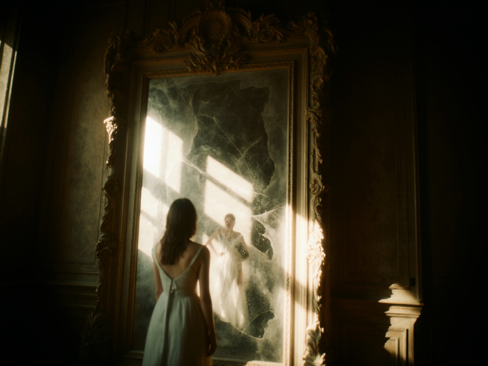The mirror rippled like water. Images flooded through it—her life, her choices, the silences she kept. She saw the moments she’d locked away: the guilt, the longing, the love she never spoke. The reflection raised a hand; Emma did the same. The glass was cold beneath her palm.
