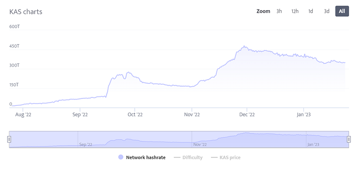 Kaspa’s ambition goes far beyond a public chain for mining. The community is actively expanding the everyday use cases of KAS. The chain’s developers are also switching Kaspa’s programming language to Rust (ETA February 2023) to boost its performance and efficiency, attracting developers focusing on Layer2 smart contracts and DeFi.