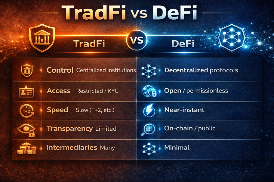 TradFi is built on layers, banks, clearing houses, payment processors. Every step adds time, cost, and friction and blockchain strips all of that away.There are no middlemen deciding who can or can’t transact because there are no business hours or borders.