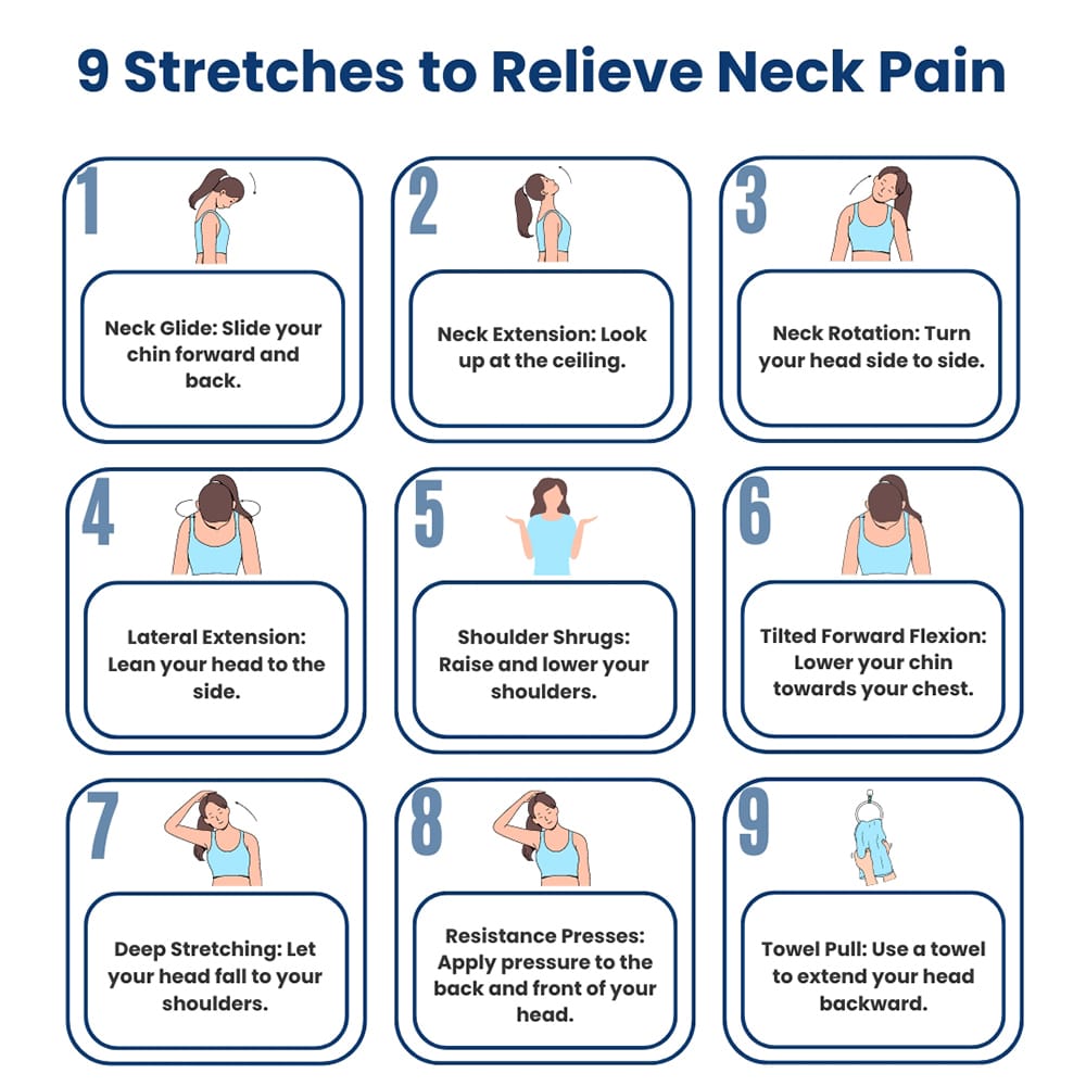 - Perform gentle neck and shoulder stretches daily