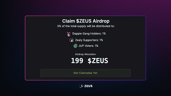 We’re thrilled to have over 300,000 eligible community members who will be able to claim $ZEUS on the Jupiter LFG Launchpad.