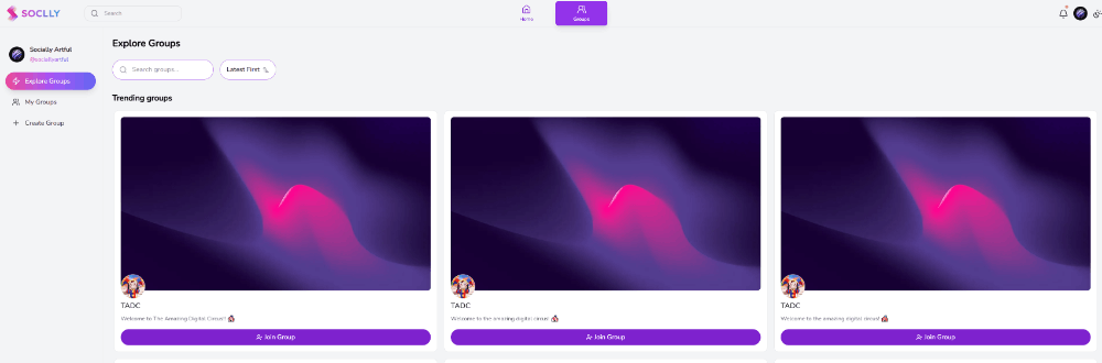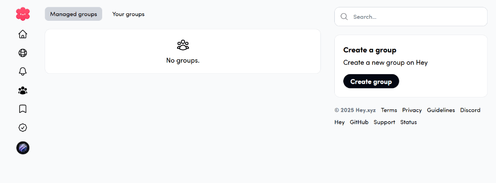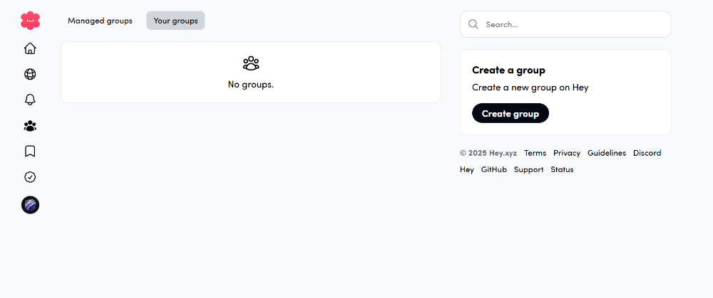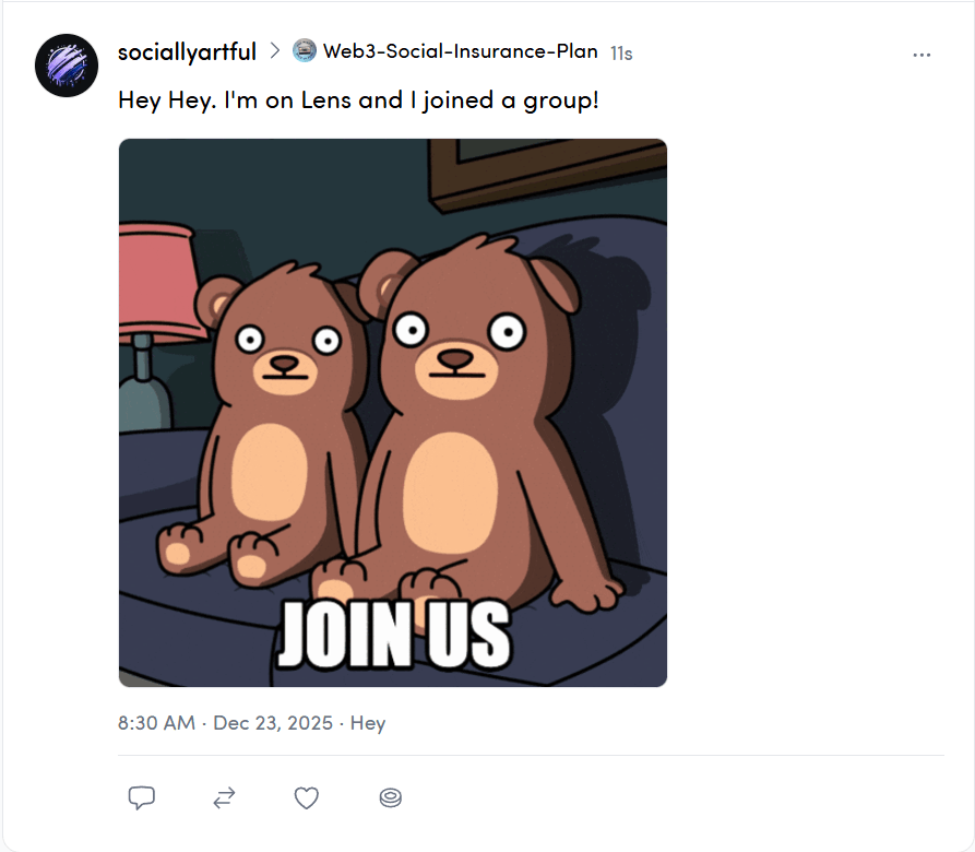 Groups are on of the core assets that Lens provides to apps. Our group is Web3-Social-Insurance-Plan, find it in the groups section of any Lens app. For the purposes of this guide we'll be using the app Hey, but the lessons are applicable to any Lens app. Web3-Social-Insurance-Plan