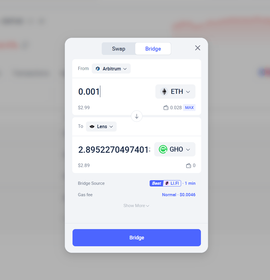 Make sure to move to something cheap like Arbitrum or Base to make the jump to Lens.