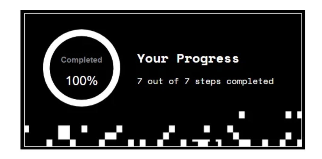 When you complete this step, Your Progress at the top of the screen would change to 100%.