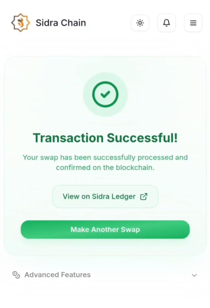 5. The platform will display a summary: You give: X SDA You get: X SDA (1:1 exchange, zero additional charges)