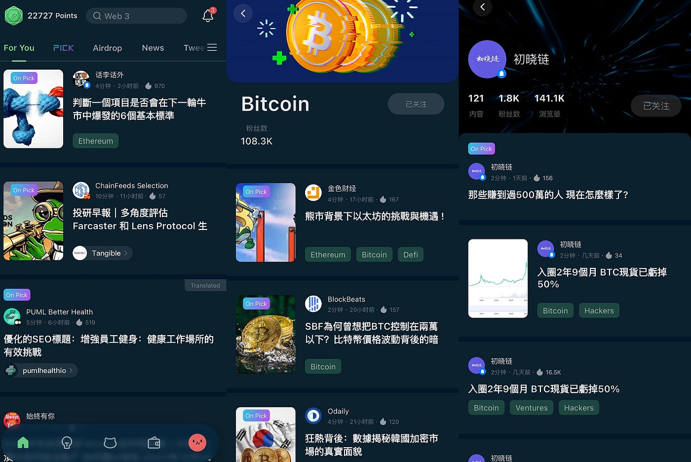 ReadON, earn points by reading, and users can browse web3 information and market hot spots.