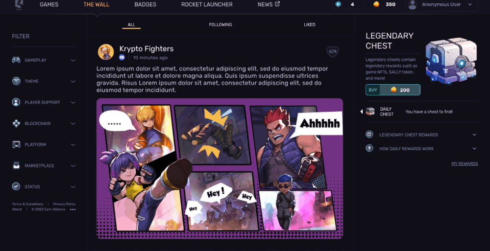 Earn Alliance is the largest web3 game aggregator and discoverability platform that empowers gamers with opportunities to discover blockchain games. Our platform is a unified hub where more than 100,000 monthly active users can access thousands of games, news, updates, NFT launches, and engaging content.