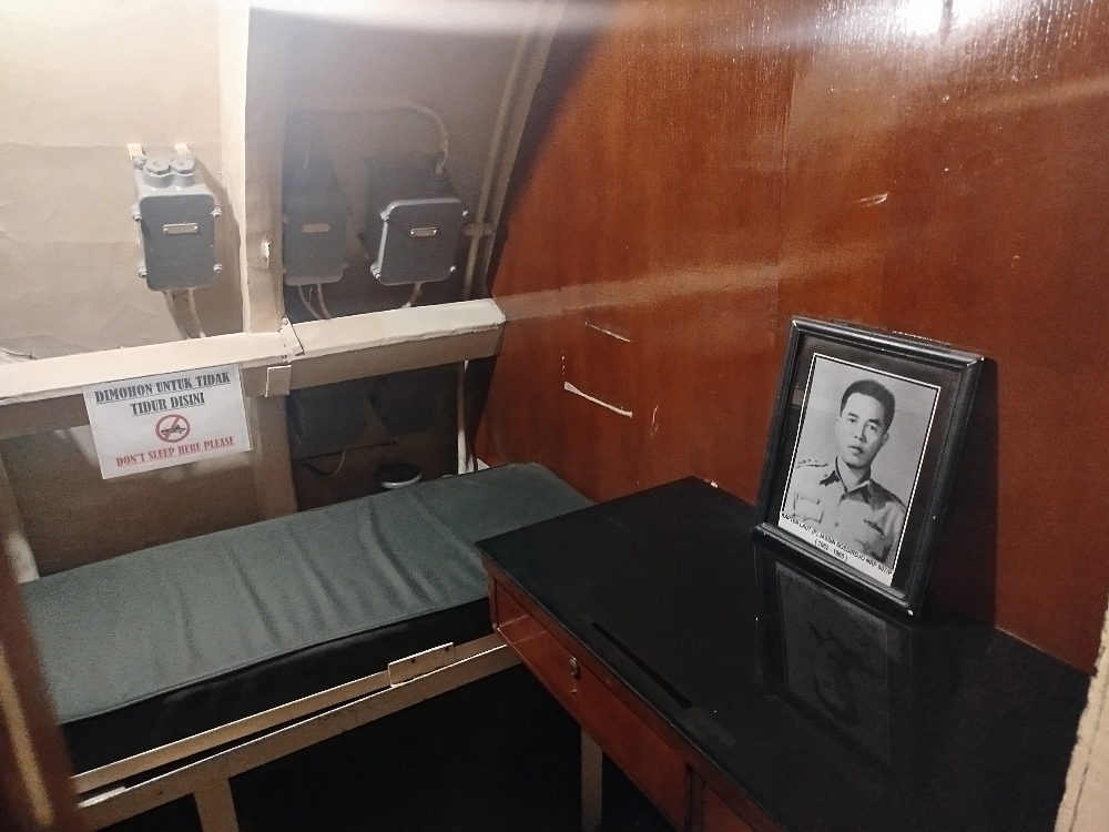 Captain room in old Indonesian Submarine , it is so small. You can see a photo former Captain