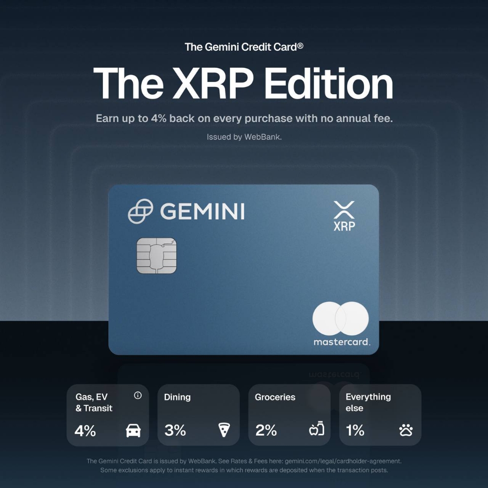 💳Gemini just launched a limited metal XRP card with up to 4% cashback. A couple of years ago, crypto cards felt futuristic. Today they’re routine.