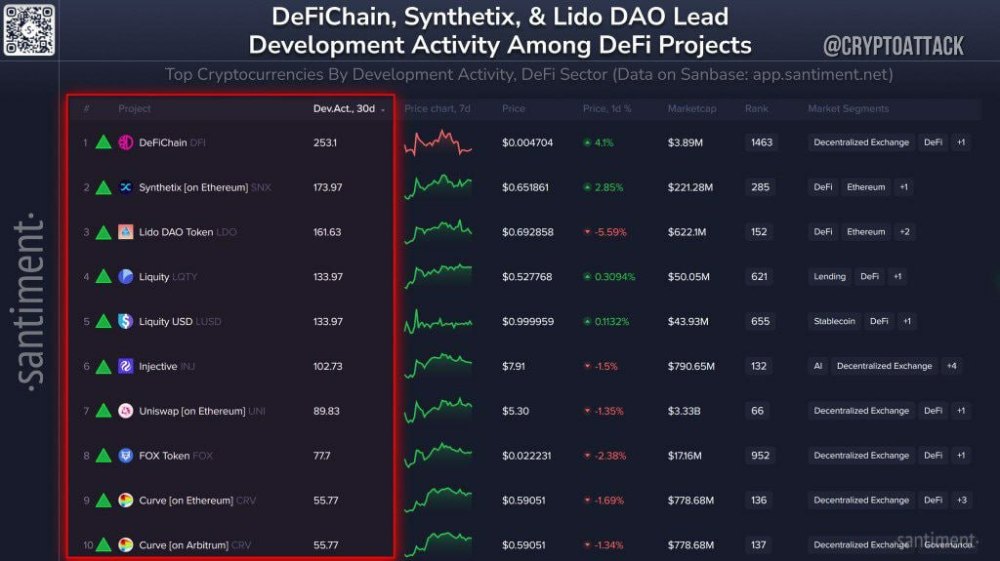 Santiment: Top 10 DeFi Projects by Developer Activity Over the Past 30 Days